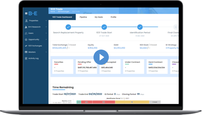 Clients who have an exclusive buyer agreement with B+E get full access to 1031 Trade. Talk to a B+E Broker for more details.