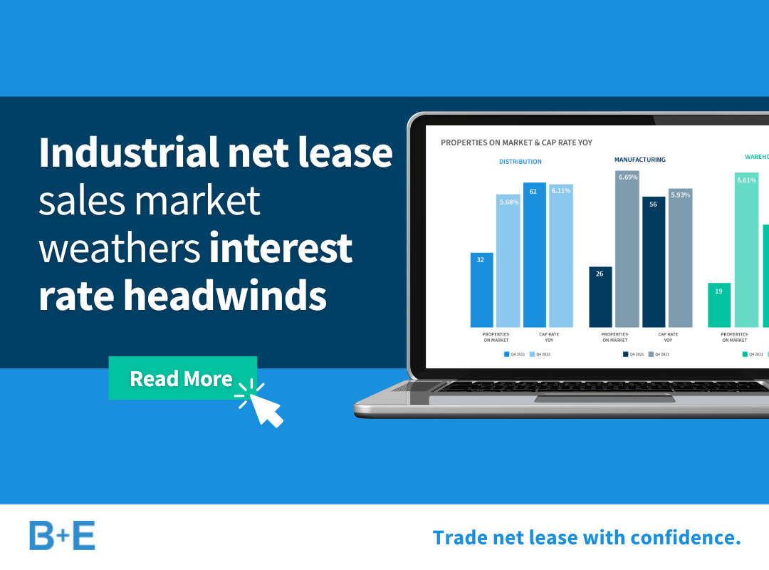 Industrial net lease sales market weathers interest rate headwinds Industrial Net Lease Investment Outlook Buyers and sellers across the commercial real estate market are dealing with the new reality of higher interest rates. Investment activity and cap rates in the industrial net lease market appear to be holding up amid rising capital costs, and B+E […]