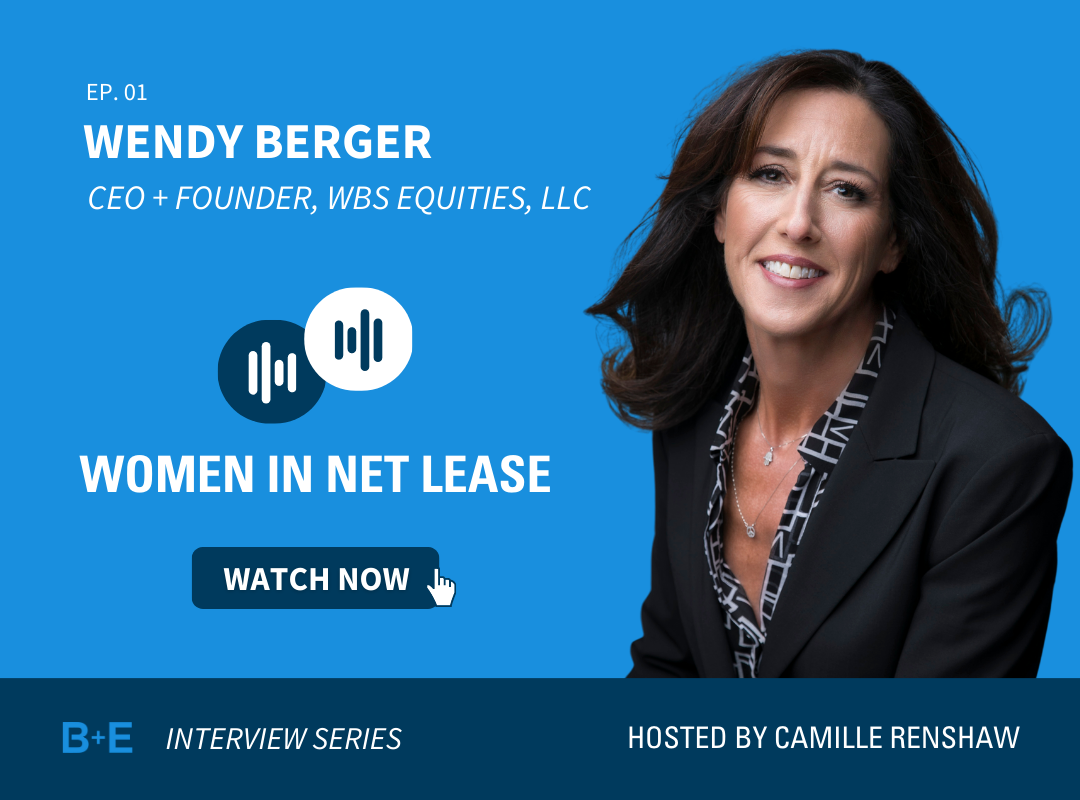 Women in Net Lease Video Series Episode 1: Wendy Berger, CEO & Co-Founder of WBS Equities, LLC B+E is excited to release the first video in our series highlighting women in net lease! Our guests are all experts in their fields, even if they had never heard of net lease when they started out in […]