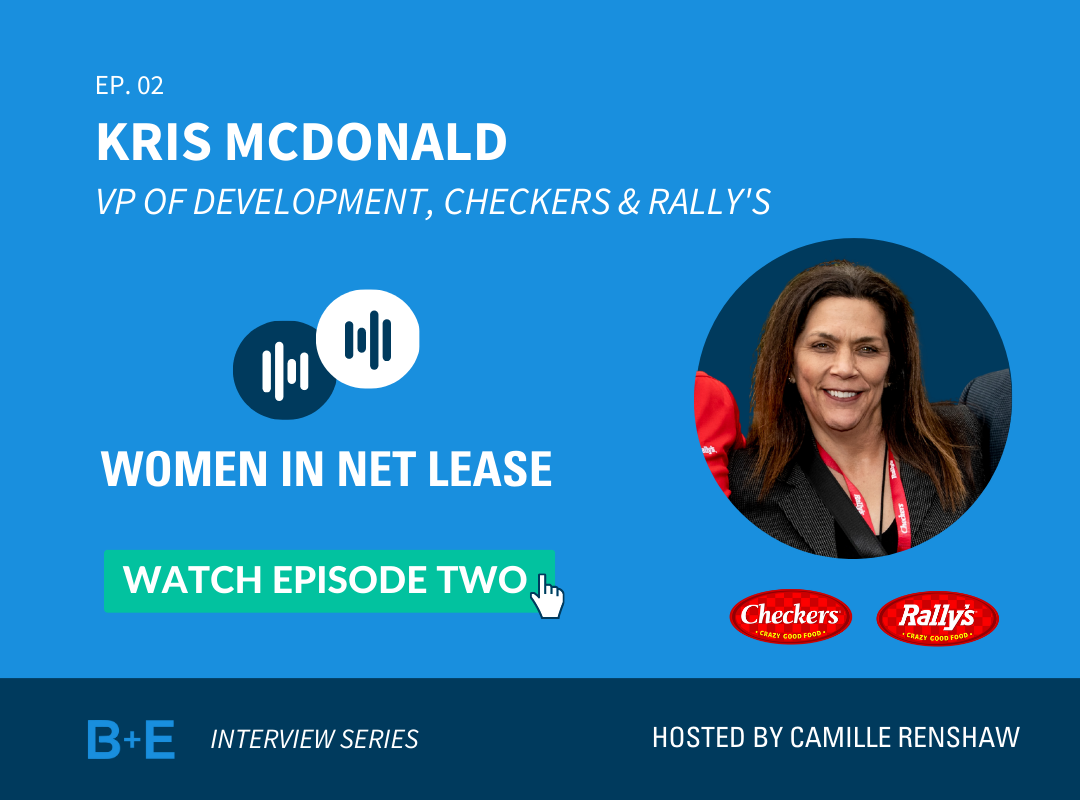 Women in Net Lease Video Series Episode 2: Kris McDonald, VP of Development, Checkers and Rally’s B+E is excited to release the second video in our series highlighting women in net lease! Our guests are all experts in their fields, even if they had never heard of net lease when they started out in their […]