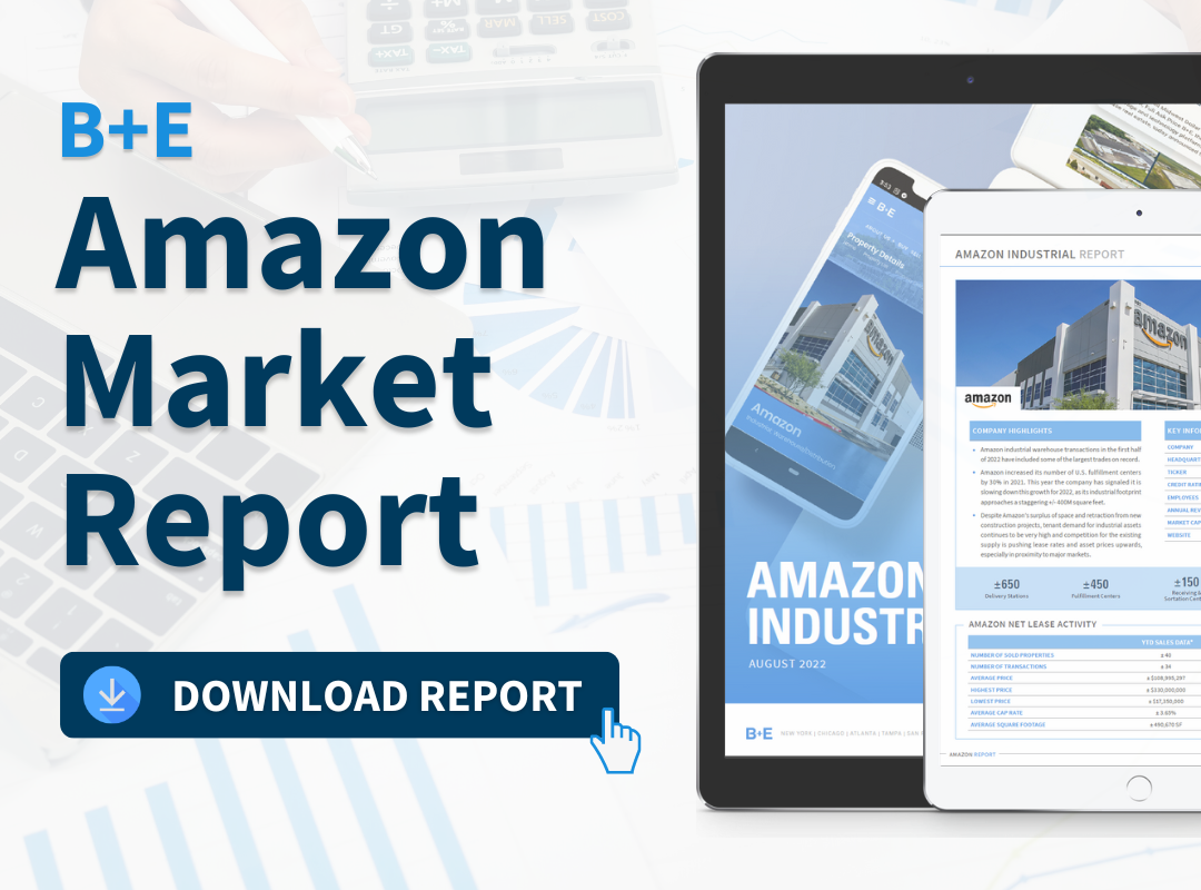 B+E Net Lease Industrial Report: Amazon B+E takes a look at current net lease Amazon market activity: Historical & on market sale prices On market cap rates Lease terms & more! Key Points:Amazon industrial warehouse transactions in H1 of 2022 have included some of the largest trades on record.Amazon increased its number of U.S. fulfillment […]