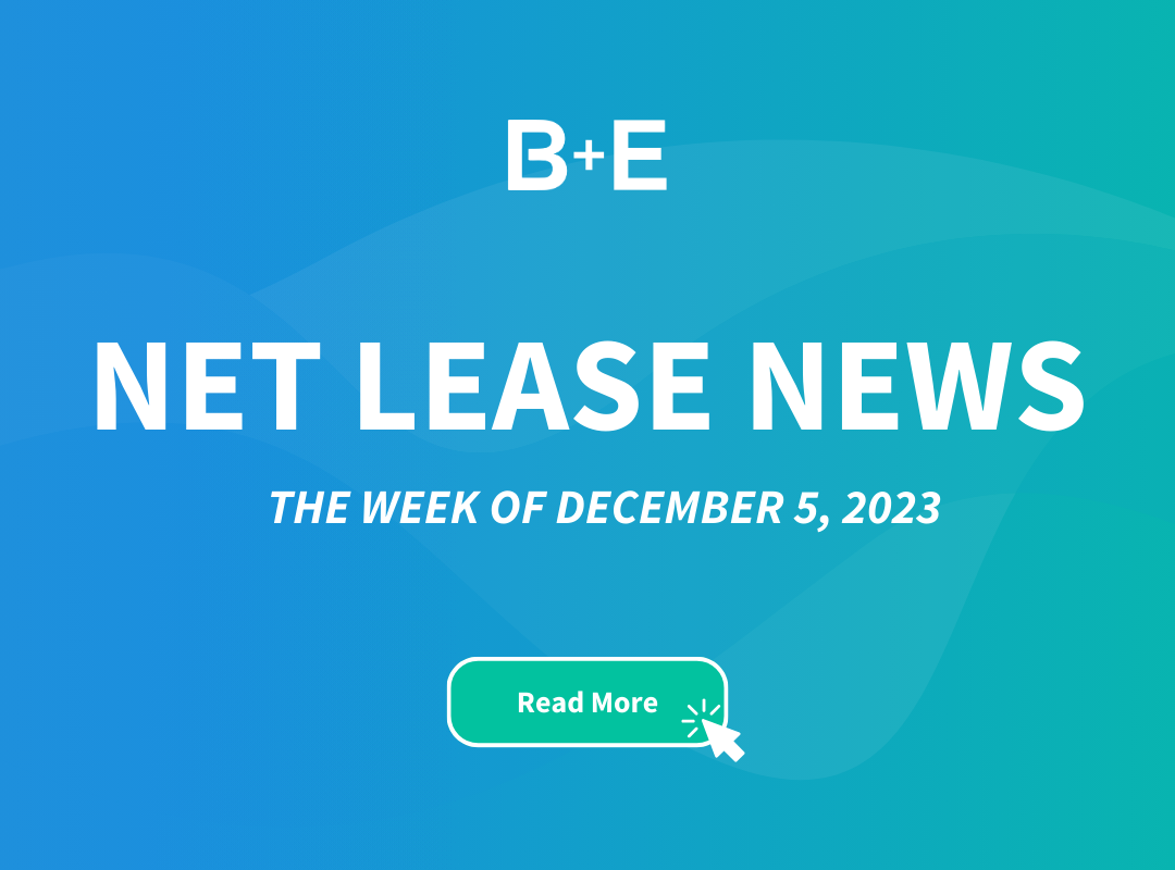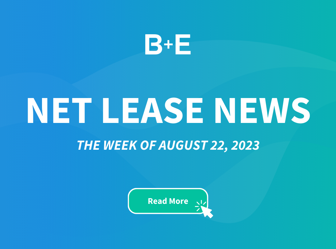B+E Weekly Newsletter August 1 – August 7, 2023   MARKET PRIME NET LEASE PROPERTIES ‘FLYING’ OFF-MARKET, BUCKING OVERALL CRE TRENDS | GlobeSt The best net lease properties are “flying off the market” despite dropping sales volumes for commercial real estate more generally, according to Camille Renshaw of B+E Net Lease. The best properties are […]