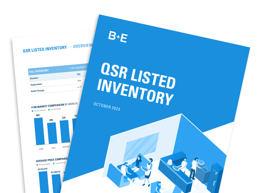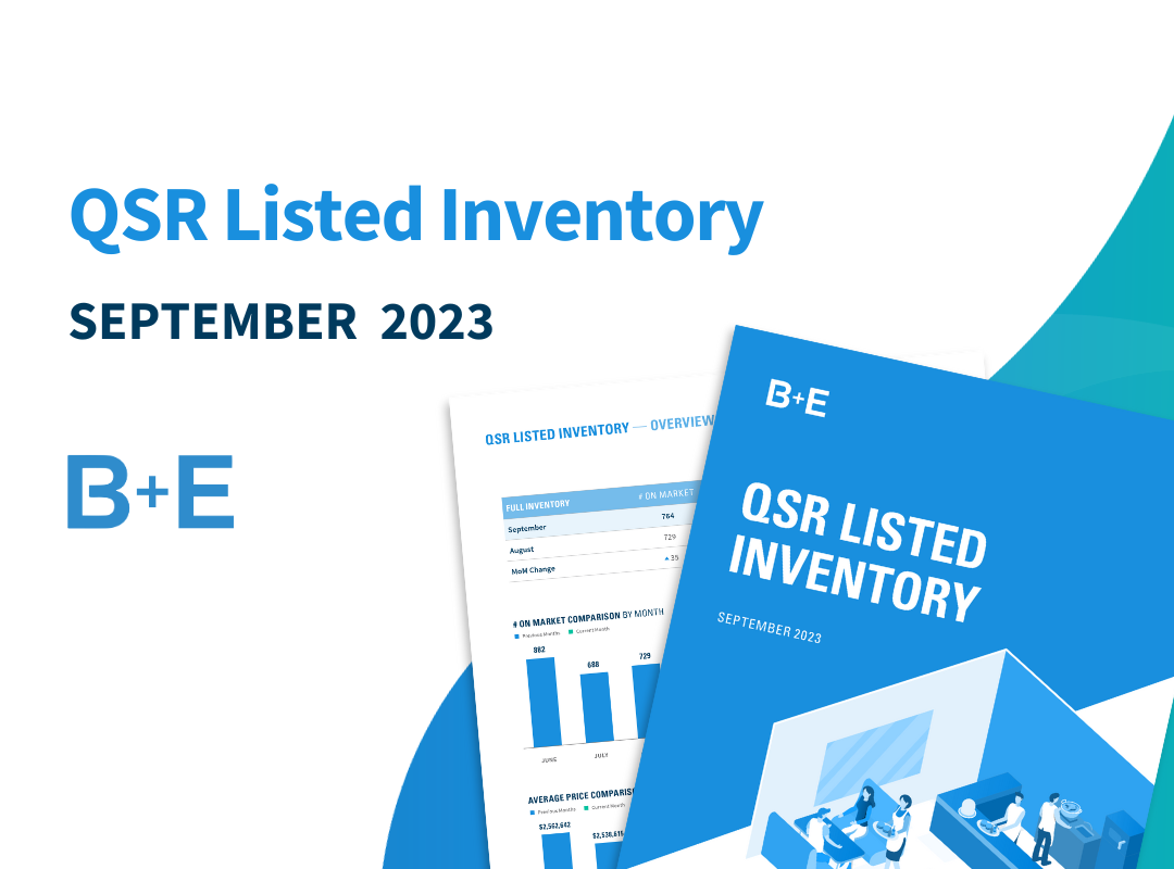 QSR Listed Inventory – September Download our QSR listed inventory report for:Listed inventory as of September 1, 2023Average on-market asking pricesAverage on-market cap ratesAverage lease terms & more! Download the Inventory Report: B+E Insights: