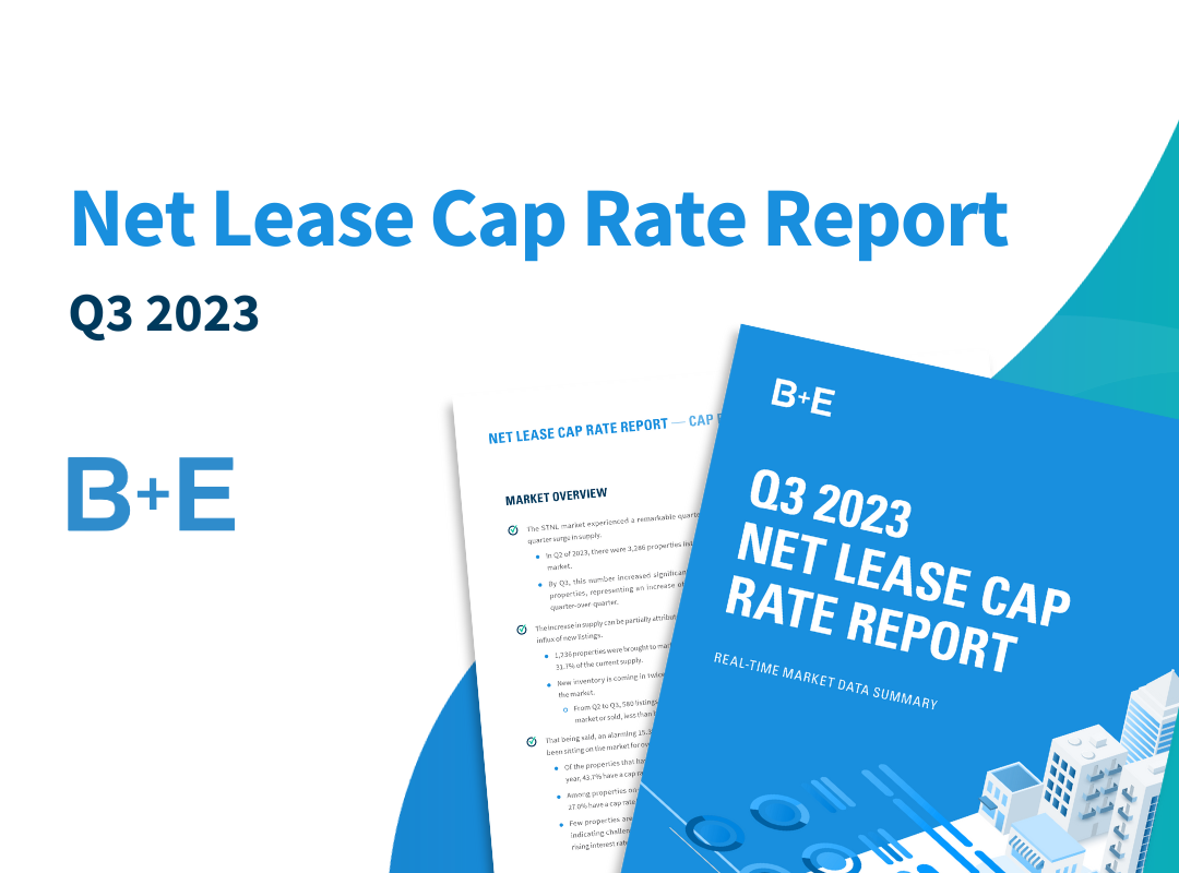 B+E Q3 2023 Net Lease Cap Rate Report A few key highlights from the report: The STNL market experienced a remarkable quarter-over-quarter surge in supply.The increase in supply can be partially attributed to a significant influx of new listings.The increase in supply can be partially attributed to a significant influx of new listings.The most significant supply […]