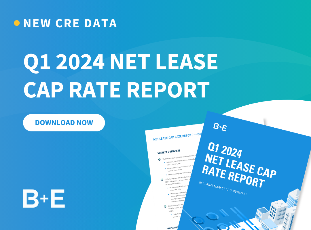 B+E Q1 2024 Net Lease Cap Rate Report A few key highlights from the report: The STNL market began 2024 with another increase in supply.Of the 2,014 properties listed since Q3 2023, 27% were listed in 2024. This means 1,479, or 73% of new listings, have remained on-market since 2023.The most significant increase in cap rates […]